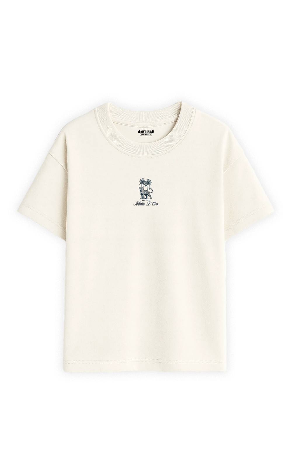 Camiseta oversize y cropped para hombre de single jersey 240 gsm confeccionada en 100% algodón orgánico hilado y peinado para una superficie uniforme y tacto suave.