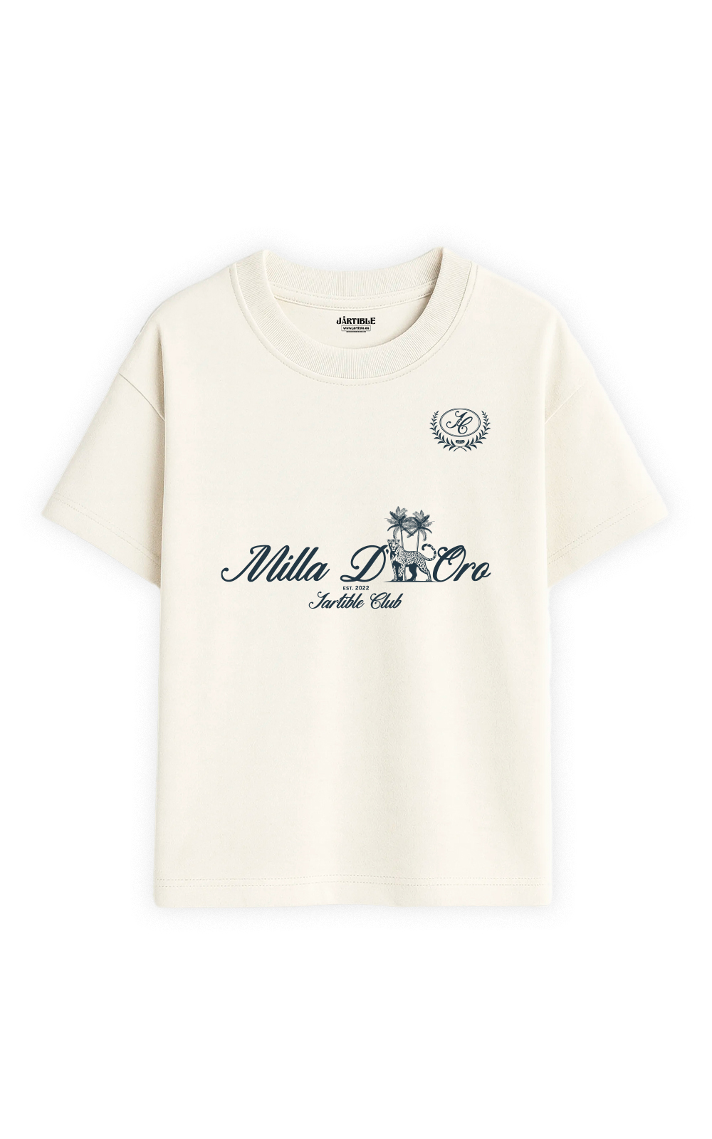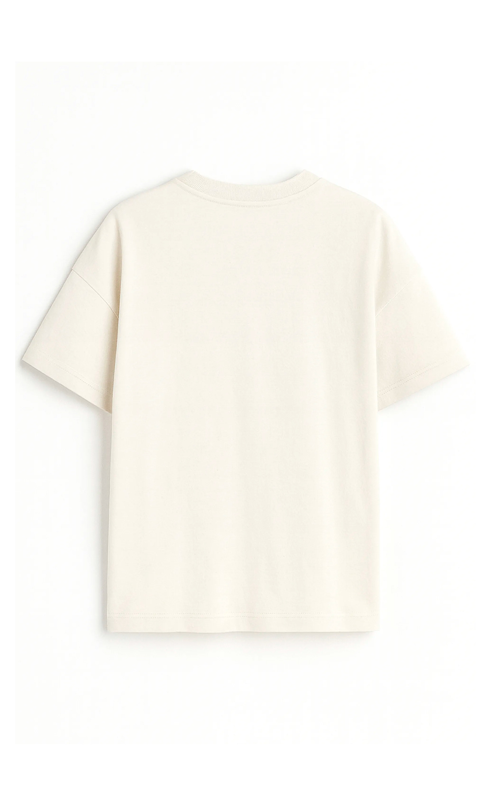 Camiseta oversize y cropped para hombre de single jersey 240 gsm confeccionada en 100% algodón orgánico hilado y peinado para una superficie uniforme y tacto suave.